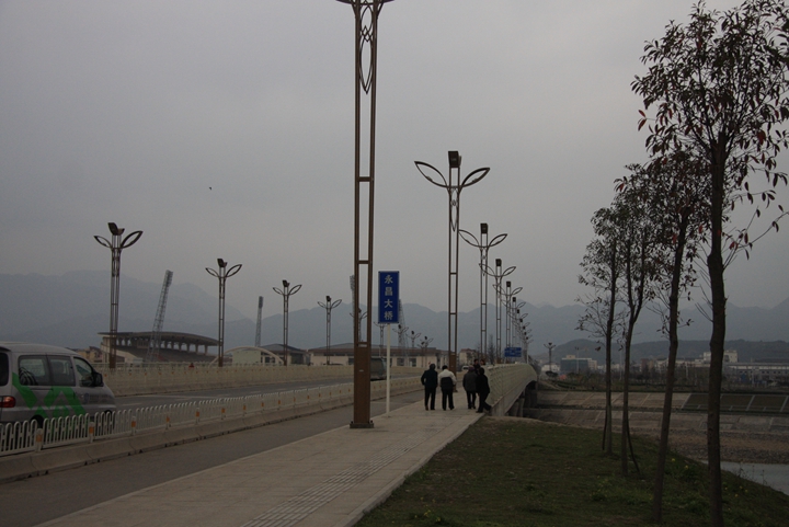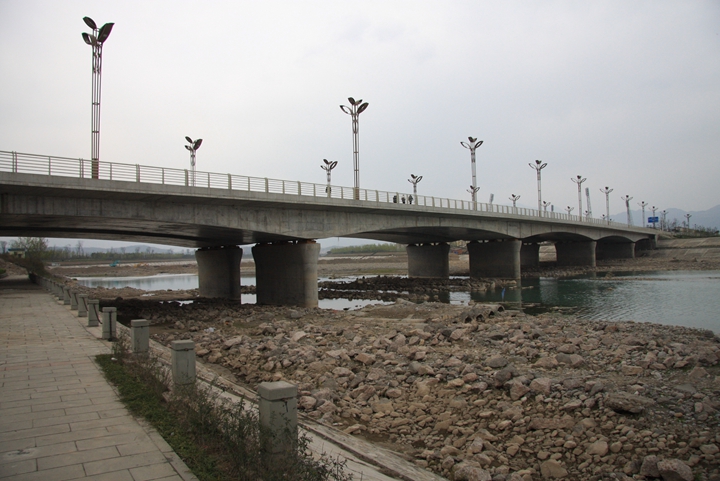 工程規(guī)模:永昌橋位于北川新縣城南端,連接齊魯大道和安北公路,是進(jìn)入新縣城的門戶,也是新縣城對(duì)外交通的主要通道,代表著新縣城的形象和未來。永昌橋結(jié)構(gòu)型式采用變截面連續(xù)梁方案,橋梁全長550米,其中橋梁主體長230米,寬34米,斜15°。主梁跨徑組合為32.5+3x55+32.5米,箱梁分兩幅,斷面為單箱三室,跨中梁高1.9米,橋墩處梁高3.5米,懸臂2.5米。