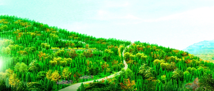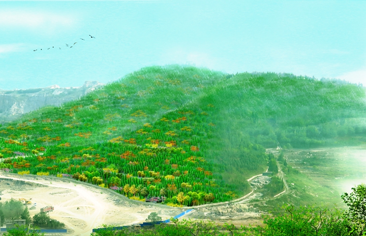 工程規(guī)模:該工程位于高新區(qū)孫村立交東南,在建蓮花山殯儀館西側。主要包括殯儀館西側荒山、采石跡地,總綠化面積約172.6畝。