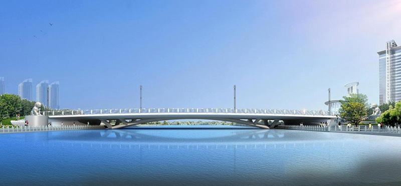 肋下承式梁拱組合體系橋,橋跨 70 米,寬度 33.5-42.9 米;聚賢橋路南橋為上承式梁拱組合橋,橋跨組合為